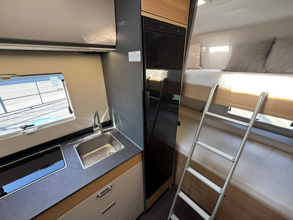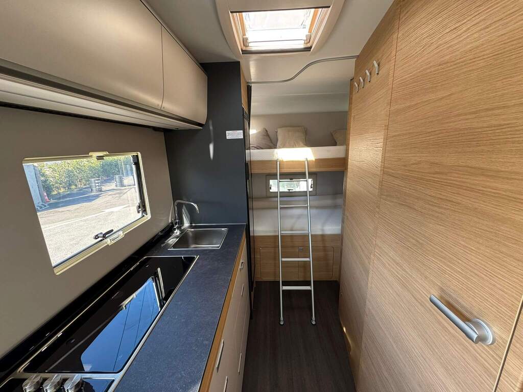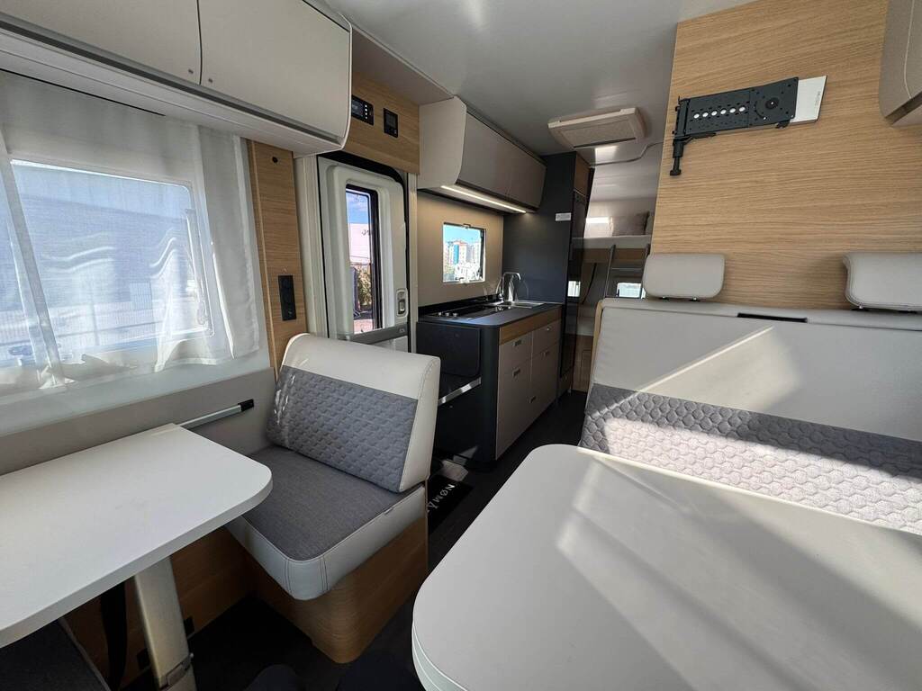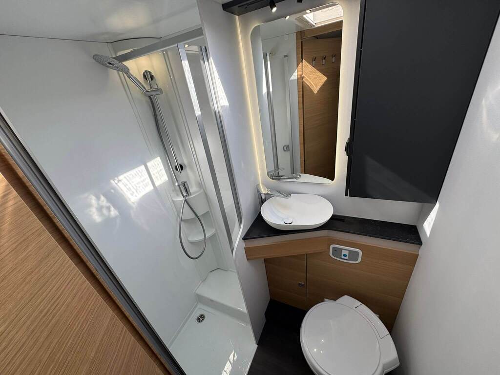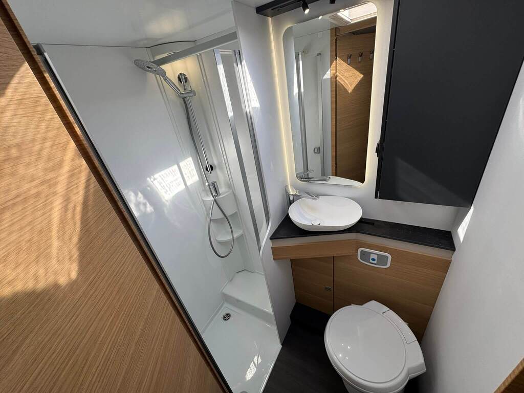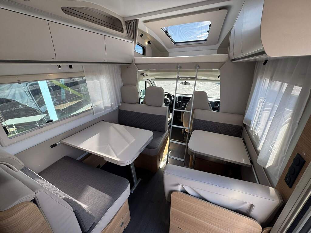 La Adria Coral XL 650 DK 2026 destaca por su interior luminoso, distribución ergonómica y un diseño contemporáneo con materiales de alta calidad. Su gran ventanal panorámico proporciona una sensación de amplitud y conexión con el exterior.