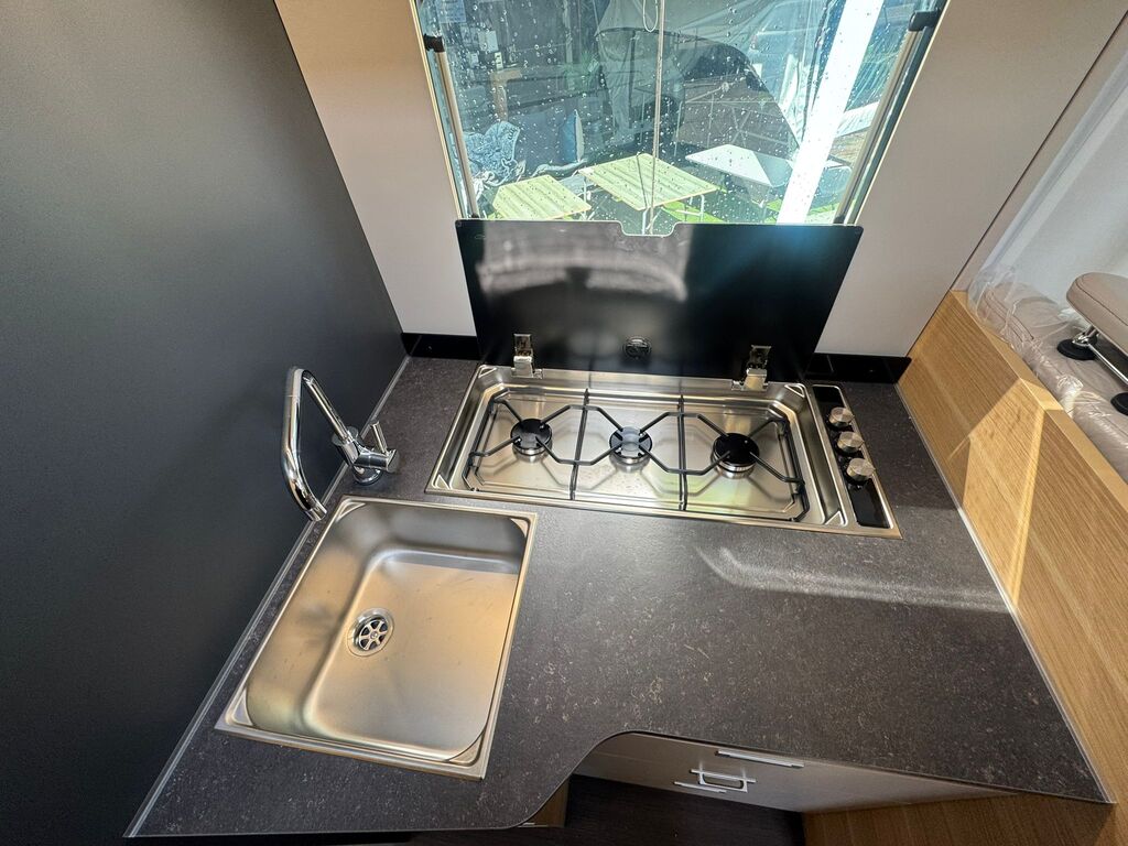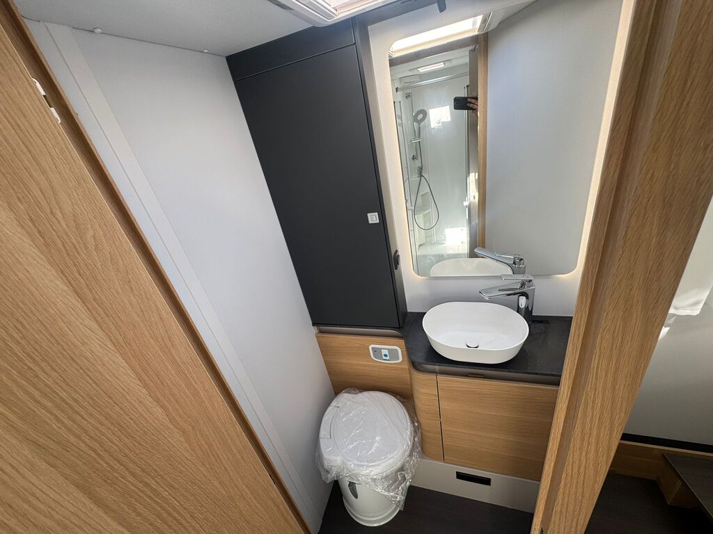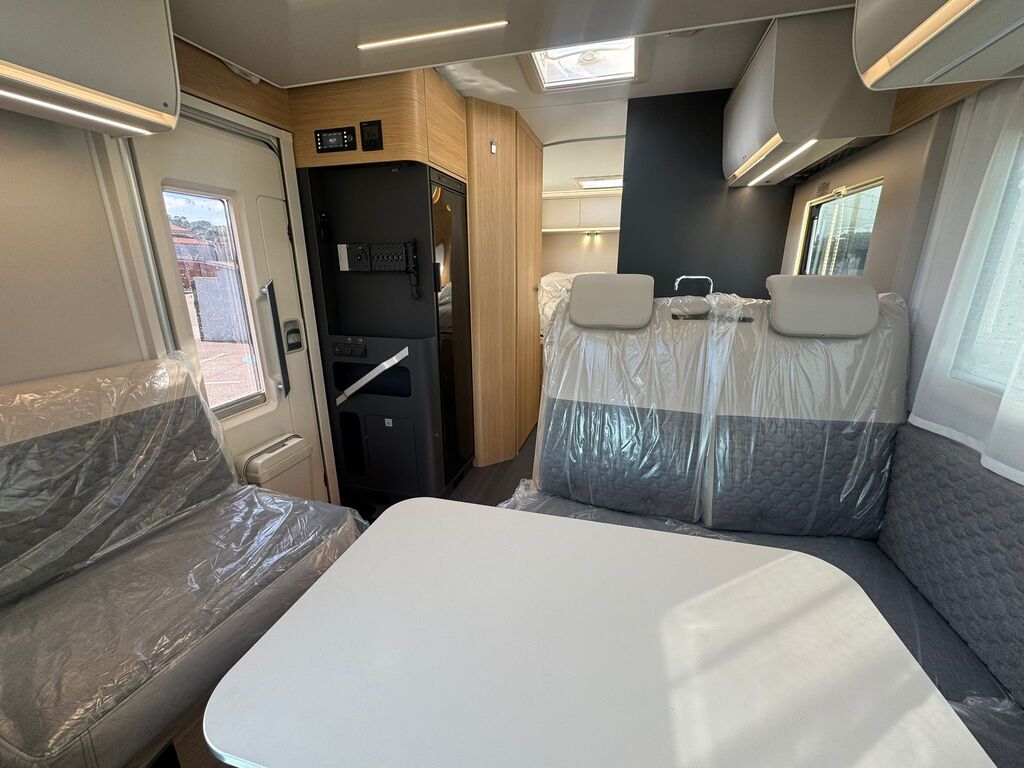 Lo que realmente enamora de este modelo es su equilibrio: es lo suficientemente compacta para viajar con agilidad, pero amplia por dentro gracias a una distribución que aprovecha cada centímetro. Su cama isla trasera proporciona la comodidad de una habitación de hotel, mientras que su cama basculante eléctrica sobre el salón añade versatilidad para invitados o niños.