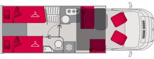 • 🛏️ Distribución: Camas gemelas traseras + salón convertible