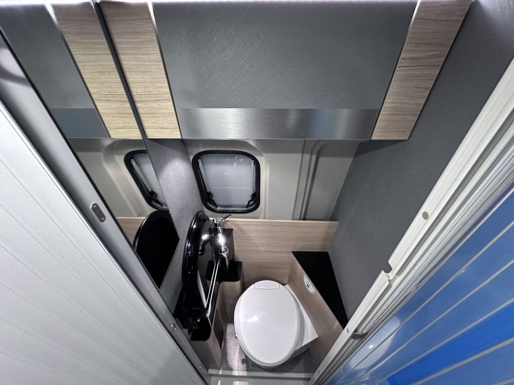 Asimismo, el amplio baño circular está diseñado para ofrecerte la máxima comodidad y privacidad durante tus viajes, garantizando que tengas todo lo necesario a mano.