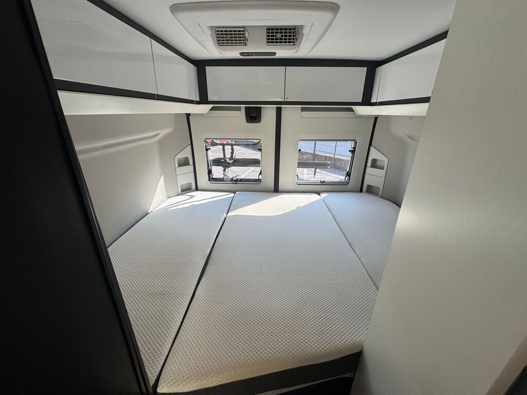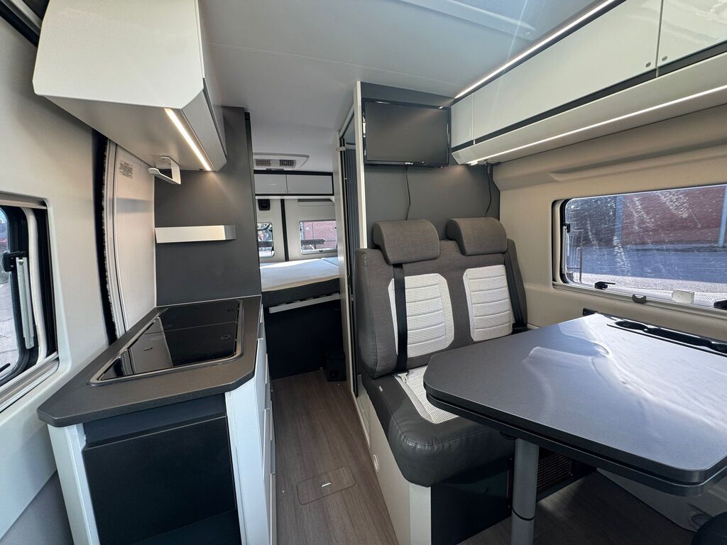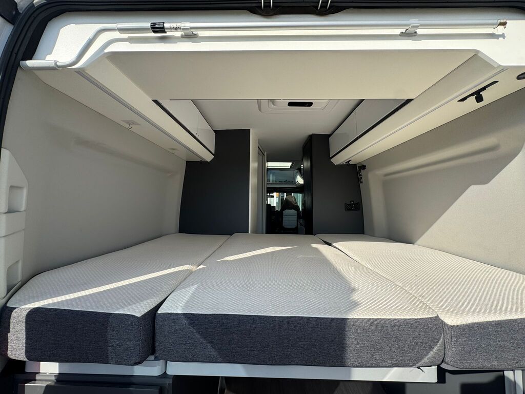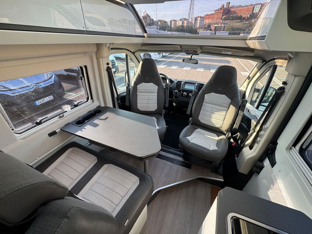 Una camper que combina diseño premium, confort y practicidad a partes iguales. Su baño con mampara pivotante (sin cortina) y su cuidada distribución la hacen perfecta para parejas que quieren viajar con el máximo nivel de comodidad.