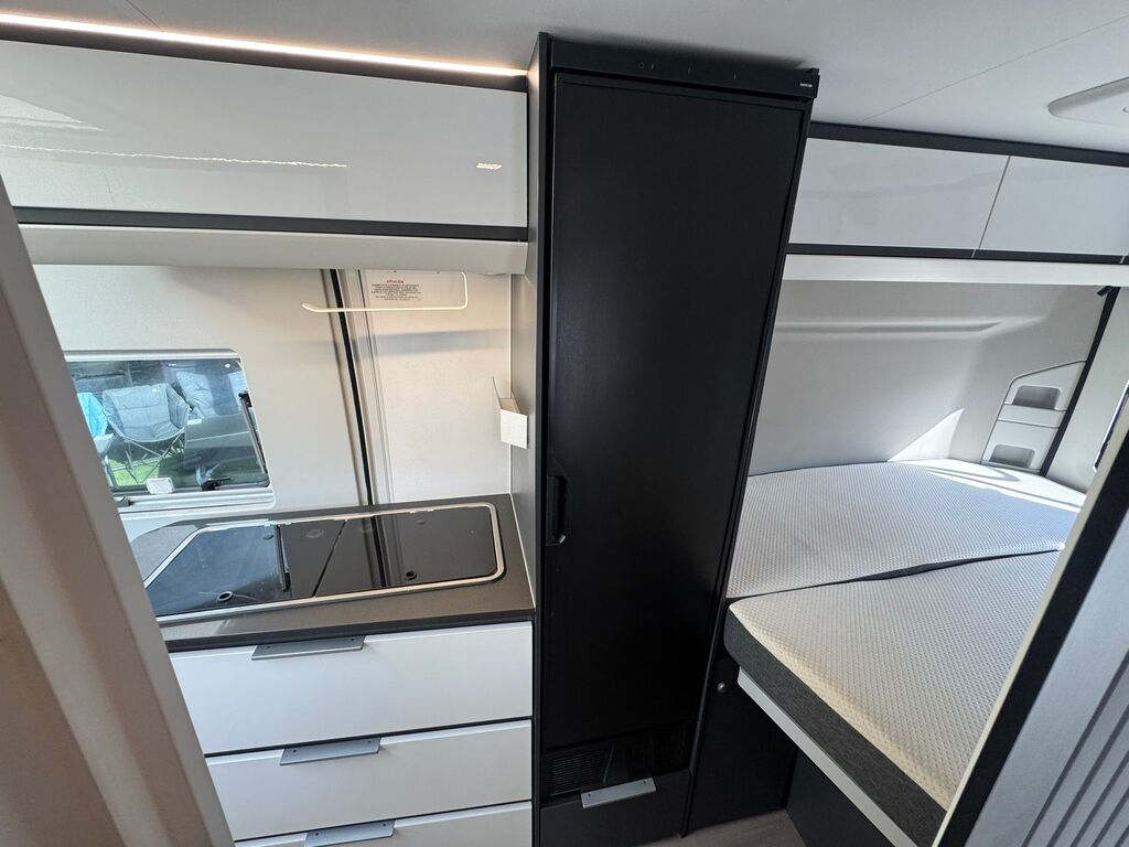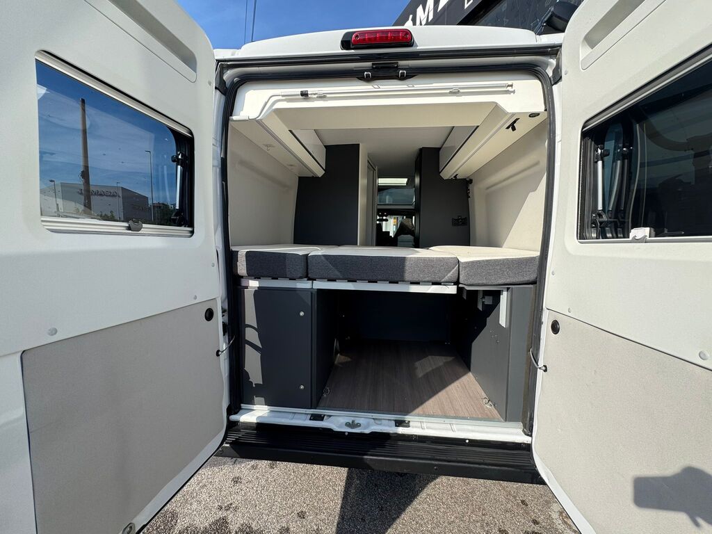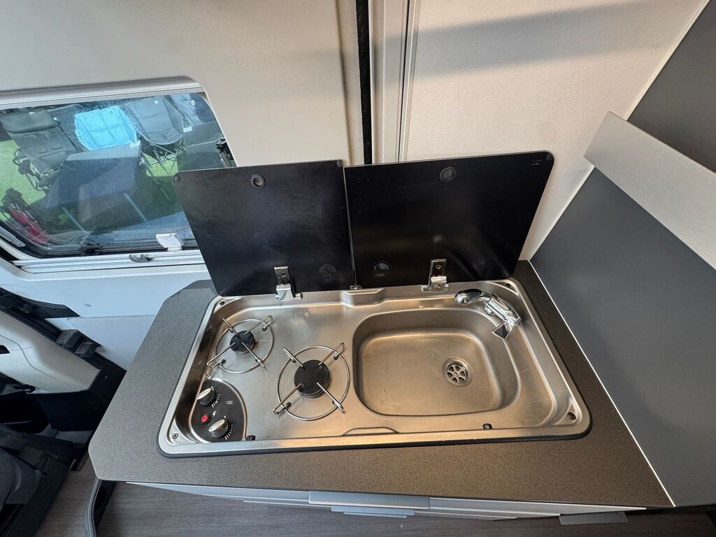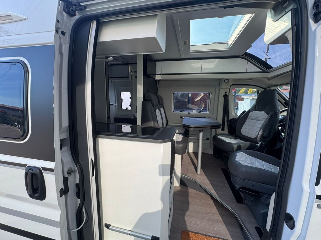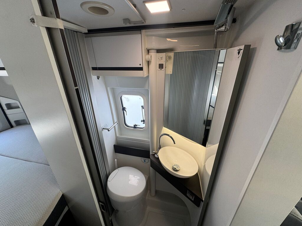 Una camper que combina diseño premium, confort y practicidad a partes iguales. Su baño con mampara pivotante (sin cortina) y su cuidada distribución la hacen perfecta para parejas que quieren viajar con el máximo nivel de comodidad.