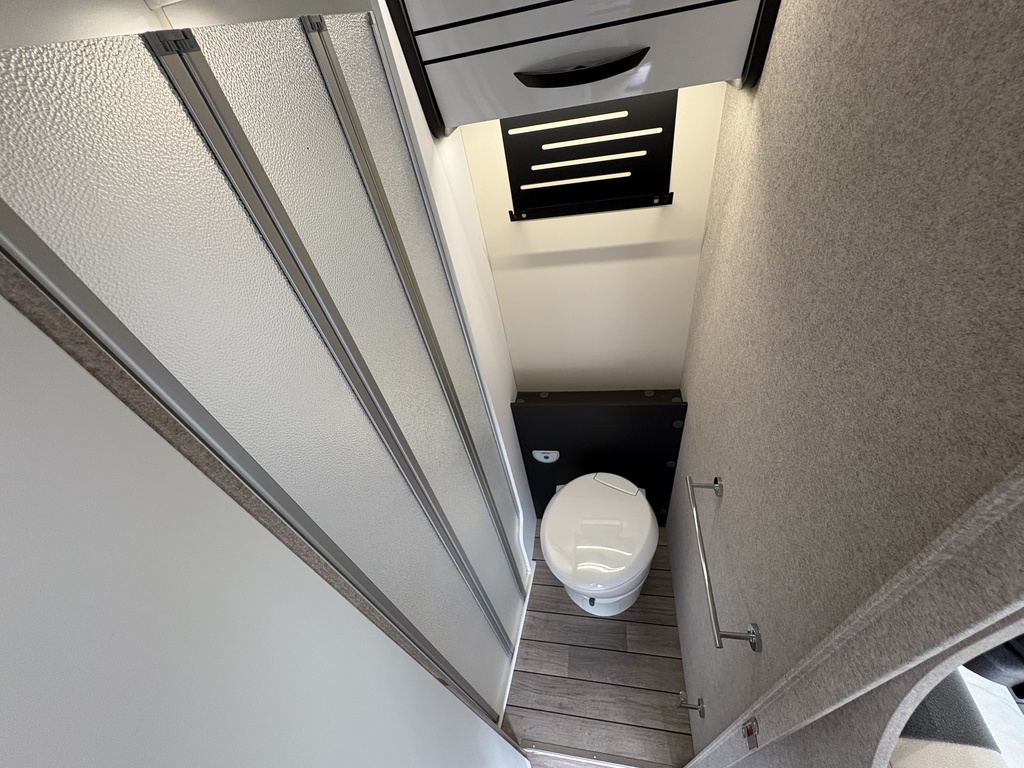 Baño con ducha independiente, para disfrutar de la máxima privacidad en ruta.